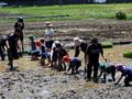 健伸幼稚園の園児が田植え体験、物の価値を伝えたいと……