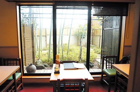 新京成線二和向台駅あるいは三咲駅から車で約10分、畑の中に突然と現れるのは、平成18年にオープンしたうどん、そば、鴨料理、会席料理屋の「竹林庭」。店を入るとロボットのペッパー君が出迎え客を和ませる。45坪の広々とした店内は竹林に面したり、庭園を鑑賞できたり、滝を眺められるなど、それぞれ趣の異なる部屋に分かれている。