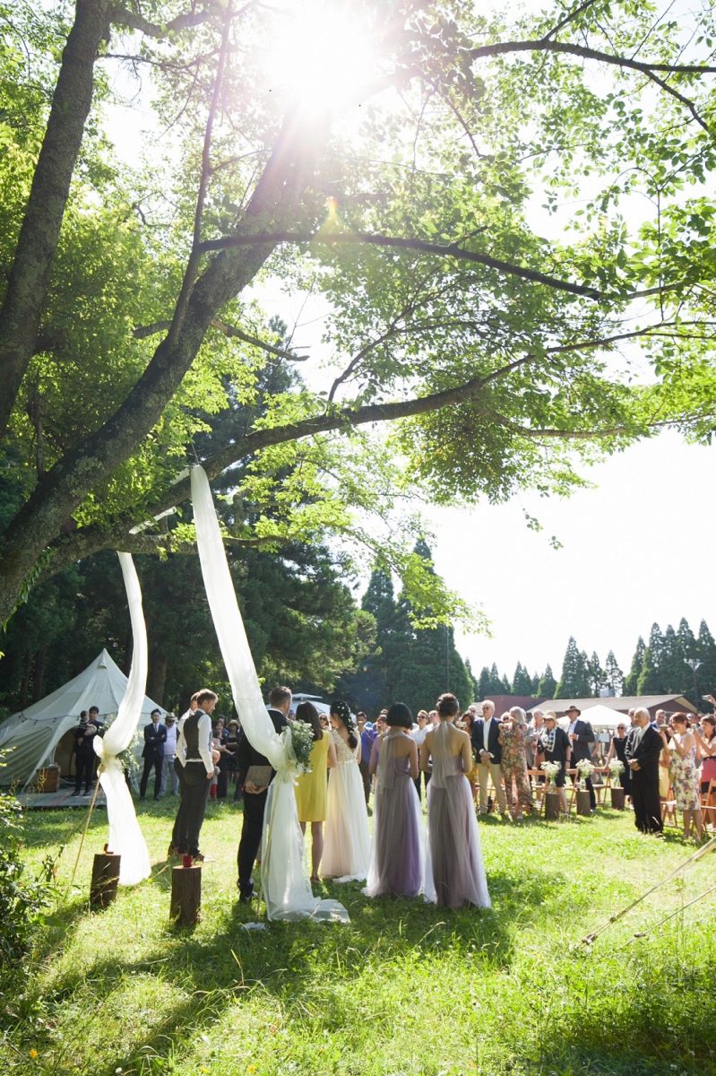 越前さん自身は2006年に結婚。結婚式に出席することも多くなり、プランについて考えるようになった。そんな折、千葉市昭和の森でキャンプをした際に「こういう場所で結婚式が挙げられれば素敵」と思ったのをきかっけに、2016年からアウトドアウエディングの企画を始めた。「野外はビジュアル的にいいですし、開放的なので、みなさんのリラックスした笑顔が最高」と越前さん。