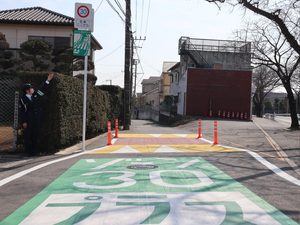 生活道路の新たな交通安全対策として3月10日から供用が開始された施策です。千葉県警察と船橋市が連携して、県内で初めて古作地区に整備しました。