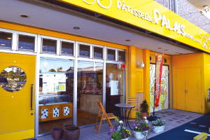 武蔵野線船橋法典駅にほど近い、木下街道沿いに2008年4月にオープンした「パティスリー パレ」。黄色い看板が目印の同店は、入口のドアを開けると広い店内に、右手には宮内シェフを始めスタッフが笑顔で働くケーキ工房が目に入る。