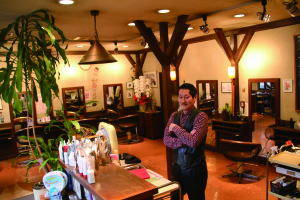 カナダ杉を使ったスペイン調のアンティークな店内は「おしゃれな喫茶店」を思わせる。「ストロークカット」で髪の素材に合わせて最適なヘアスタイルを提案するお店。