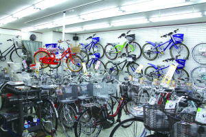 約10坪の店内に60台ほどの自転車が並ぶ地域の自転車屋さん。店頭に無い商品も特約店契約をしているブリジストン、YAMAHA電動自転車なら超特価でお取り寄せ可能。