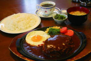 古き良き喫茶店の名残がある落ち着いた雰囲気の同店では、ランチの日替わり定食がおすすめ。ハンバーグやしょうが焼きなど肉料理にフライや煮物の2品盛り+珈琲又はビールがセット。ライス大盛りも無料で840円はおどろき。