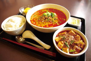 四川セット(900円)…担担麺・ハーフ正宗麻婆豆腐・ご飯又は白粥・デザート・搾菜(ザーサイ)がつく
