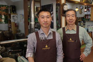 酸味を抑えて甘みを引き出したこだわりの珈琲豆は、昔からの釜でじっくり焙煎したもの。豆は200g 580円から販売。香ばしい香りが漂う店内では、ハンドドリップのコーヒーも楽しめる。