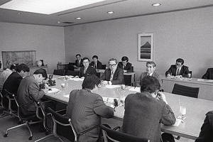 ![]() ▲【1996年3月】 「船橋駅南口第一地区再開発見直し方針(案)」 全体会議で了承。写真中央は大橋和夫前市長。 |