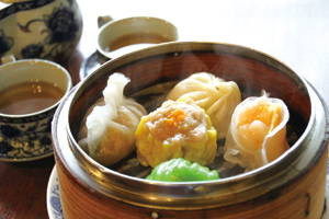 写真はえび蒸し餃子、翡翠餃子、小龍包、至福肉しゅうまい、五目蒸し餃子の5点 ※多少内容に変更あり