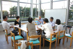 ![]() 勉強会の開催に向けて市民活動サポートセンターで毎週火曜日、タブレットの教え合いを開催している |