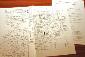 ![]() 会員手作りの散策案内図。参加者にはリピーターも多い。 |