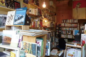 新刊・古書・洋書・和書の販売・買取を行う本屋で、トラックでの移動販売から始めた。大手の流通を通さない小冊子・リトルプレスも販売している。それを目当てに来店する客も多いとか。 |