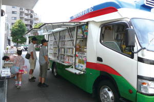![]() 4,000冊の本を乗せて走るまつかぜ号。 |
