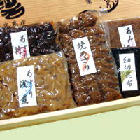 各種佃煮を、お好みで詰合せできます。船橋からの贈り物にどうぞ。