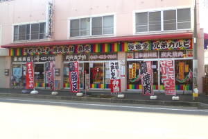 七輪で焼肉と韓国家庭料理がいただける韓国料理店。店内には船橋で30年以上続くキムチや韓国のお惣菜や食材を販売するブースもある。 |