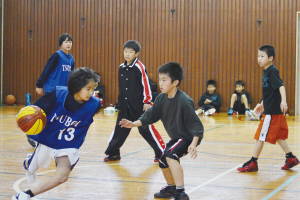 学校の教師が指導者になる「学校体育(以下「学体」)」に対して、坪井小学校ミニバスケットボールクラブは一般人が指導にあたる「社会体育(以下「社体」)」だ。「学体」であれば毎日指導者のもとで練習ができるが、「社体」は指導者がいるのは週末だけになりがち。「学体と同じ環境を作ってあげたかった」と、自営の本木監督は月・木・金・土・日曜日のすべての練習に顔を出す。そして、「バスケットは学年じゃない」と、やる気さえあれば学年に関係なく伸びる可能性があると子どもたちを鼓舞している。