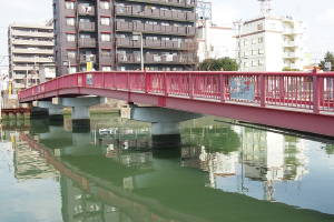 ![]() 湊町近辺は海も近いため、長い橋が多い。潮の香りと静かな水面が人々を和ませる |