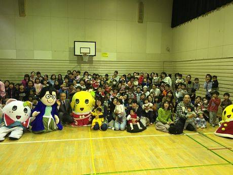 この日のふなサンタには、ふなっしーだけでなく、ふにゃっしー、ふなごろ―も参加、3梨家族での訪問となった。午前中にこでまり保育園(海神2-2-22)障がい者施設アトリエプレジュ(行田町2-9-1)、午後からは南本町子育て支援センター(南本町10-1)と宮本児童ホーム(南本町10-1)を訪問。4か所で400人近い船橋の子ども達にプレゼントを届けた。
