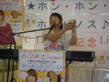 ららぽーとTOKYO-BAY(船橋市浜町2-1-1、TEL 047-433-9800)で6月24日、船橋市の特産品であるホンビノス貝のPRソング「ホン・ホン・ホンビノス♪」のCDの発売イベントが行われた。