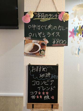コーヒーメニューは、ブレンド珈琲、アメリカン珈琲、アイスコーヒー(いずれも350円)におすすめ珈琲(450円)。カフェオレやウインナー珈琲(ともに370円)もそろえる。ジュースやフロートも用意する。