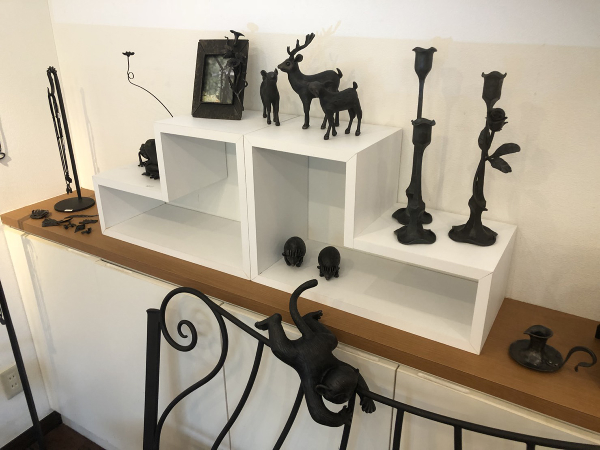 約7坪のギャラリースペースではリスや猿、ウサギや恐竜などさまざまな動物をモチーフにした作品を約150点展示。それら全てが鉄でできており、来店者からは感嘆の声が漏れることも。「固くて冷たいと思われがちな鉄の自由性を知ってもらいたかった」と西田さんは話す。
