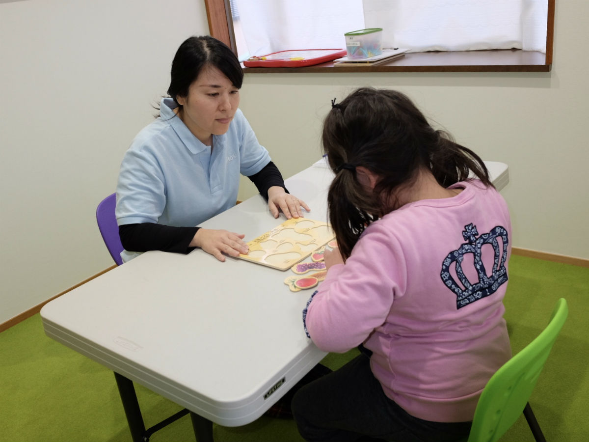 店舗面積は、就学児教室約20坪、未就学児教室約20坪の合計40坪。定員は1日10人、対象となる児童は2~9歳までで、療育手帳や身体障害者手帳を持っている児童。療育の仕方は、個別療育を中心とした発達支援(1コマ45分)になる。