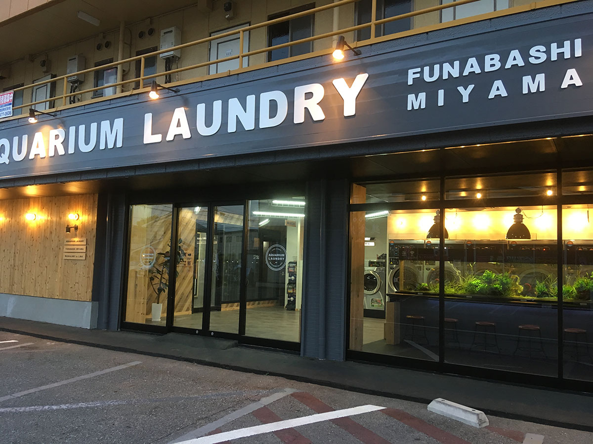 三山の住宅街に、巨大な水槽がある新感覚のコインランドリー「アクアリウムランドリー」(船橋市三山9-5-15、TEL03-5664-6494)が3月30日にオープンした。
