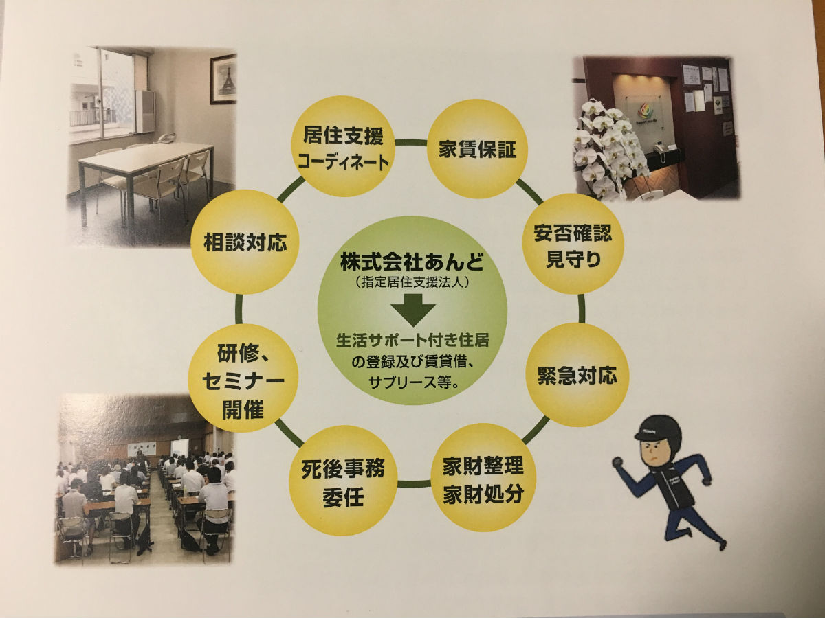 2017年12月には、「障害者総合支援法」に基づく「指定相談支援事業所あんど」の指定受け、2018年3月には「居住支援全国サミット」で先進事例として事例報告も行った。さらには同6月、「住宅確保要配慮者住居支援法人」の指定も受けている。