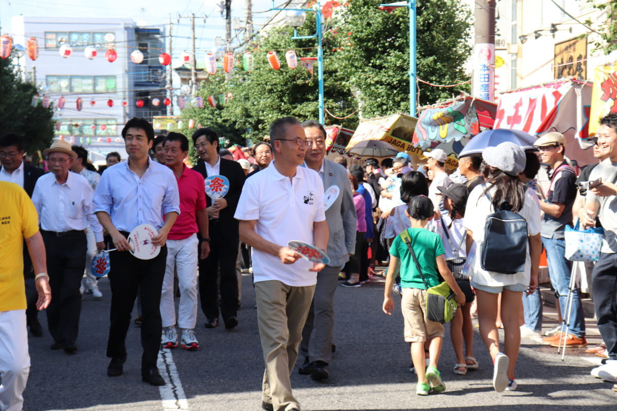 市長はあいさつで「子どもたちがお祭りに楽しい思い出を持てば、大人になったとき、きっとその時の子どもたちにも楽しいお祭りをしてあげらる。しかし、この祭りを継続していくためにはまずは市民のみなさんが商店会で買い物をしてもらわないと。商店会でどんどん買い物をしてほしい」と話した。