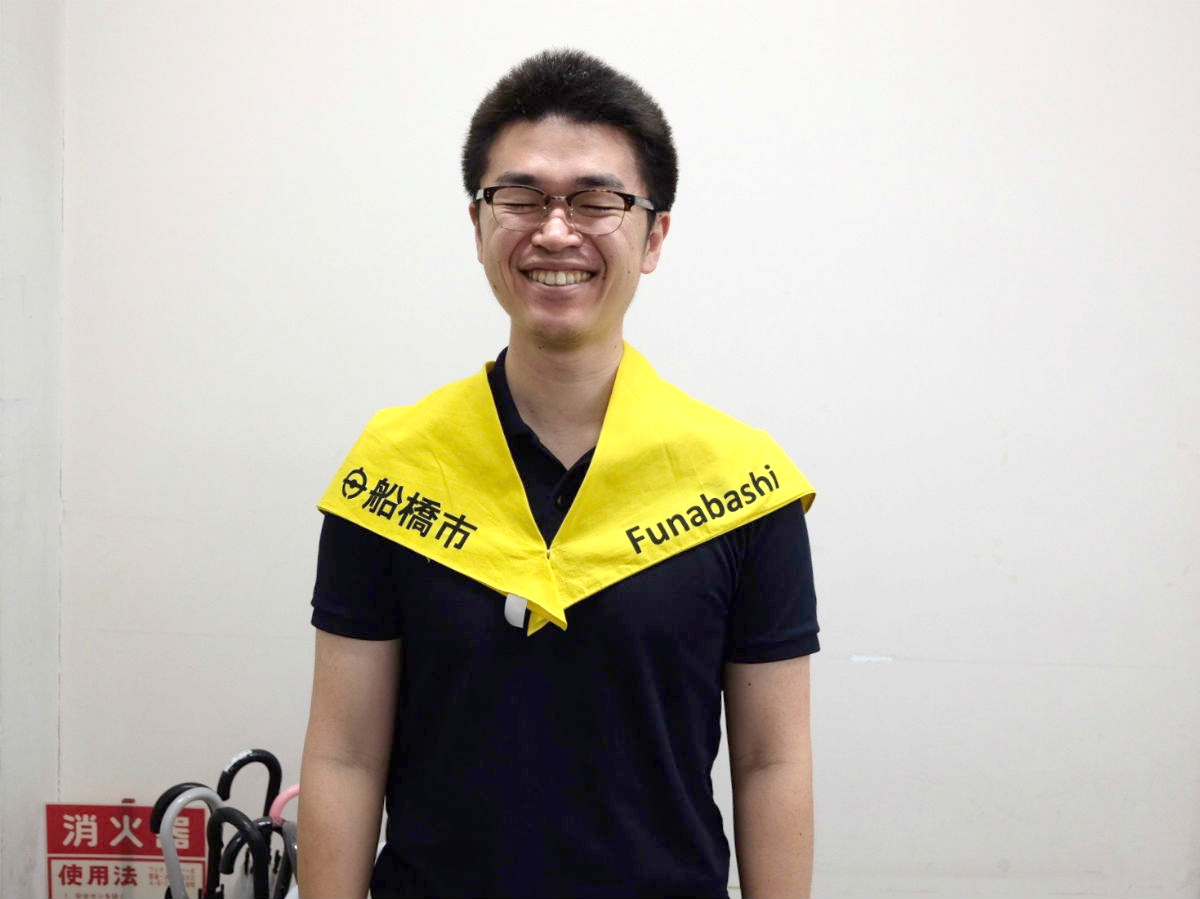 計画係長の藤井輝文さんは「一般的に通常の生活の中でも視覚、聴覚障がいの人に支援などをしてあげたいと思っていても、何をすれば良いのかが分からないものです。災害時になれば全員が被災者になり余裕がなくなりがちですので、このバンダナのように大きく『こんな支援が必要です』とあれば支援もしやすくなり、お互いに助け合えると思うんです」と作製への思いを話す。