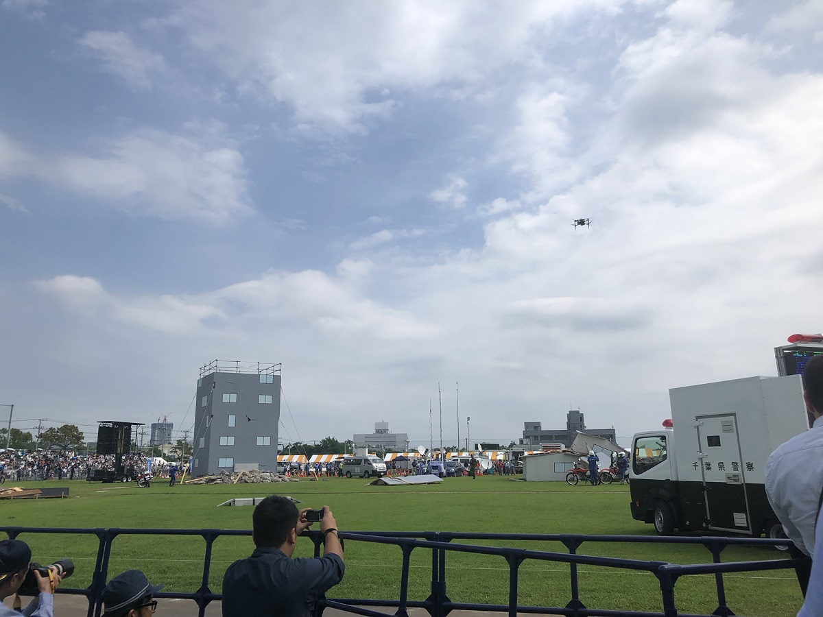 「九都県市合同防災訓練」では、主会場が高瀬町運動公園、副会場が京葉食品コンビナート協議会南岸壁に。主会場のグラウンドでは、10時35分に千葉県北西部を震源とした大規模な地震発生を想定した救出救助などの実動訓練のほか、場内の別エリアではライフライン復旧実演訓練、放水などを住民が気軽に体験できる住民参加型体験訓練も行われた。管理棟ロビーでは、ボランティアセンター運営訓練、駐車場では「防災フェア」として、関連企業などがパネル展示や非常食カレーの試食配布などをした。