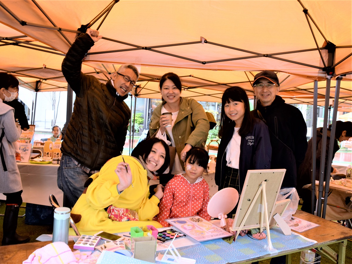 「子ども店長」では小学生が店長をつとめ、マラカス(無料)やキャンディーバック(300円)を好きな素材を選んでつくることができる。「机に向かっての勉強ではできない社会経験をしてもらえれば」と関まりこさん。ハロウィンクラフト、ヘアゴムやアイシングクッキー作りなどの子どもも楽しめるワークショップも開催。イラストレーターによるボディーペイントで顔にハロウィン柄を描いてもらう子どもたちの姿も。ハンドメイドのブースでは手作りのアクセサリーやフラワーアレンジ、ベビー用品などの雑貨を販売していた。