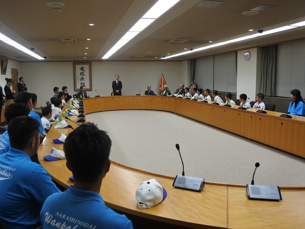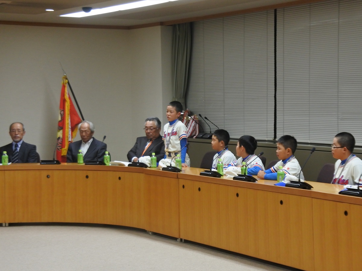 松戸市長は「自分たちの練習の成果を優勝という結果で残したことは素晴らしい。指導してくれているコーチやお父さんお母さんへの感謝の気持ちを忘れずにがんばってほしい」と激励の言葉を送った。