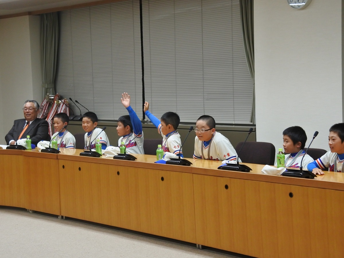 最後に質問時間が設けられ、選手たちから「子どものころの夢は?」「好きなスポーツや好きな野球チームは?」など積極的な質問が相次ぎ、「全国大会に出場したら見に来てくれますか」との質問に松戸市長は「仕事の予定がなければ必ず行きます。全国目指してがんばってほしい」と約束し、選手たちにエールを送った。