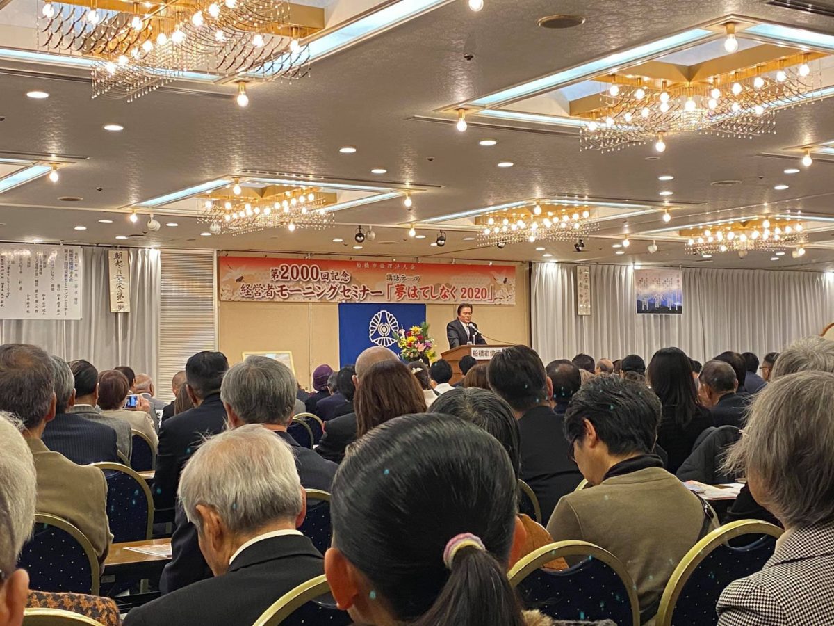 このモーニングセミナーが、「毎週欠かさず開催されてきたこと」で、令和初の元旦に2000回という記念の講演開催となった。また、全国でも一番最初に開催された2000回目のモーニングセミナーという事で全国の各単位会に所属する経営者らも駆け付けた。また、この日のセミナーには松戸徹船橋市長も参加した。