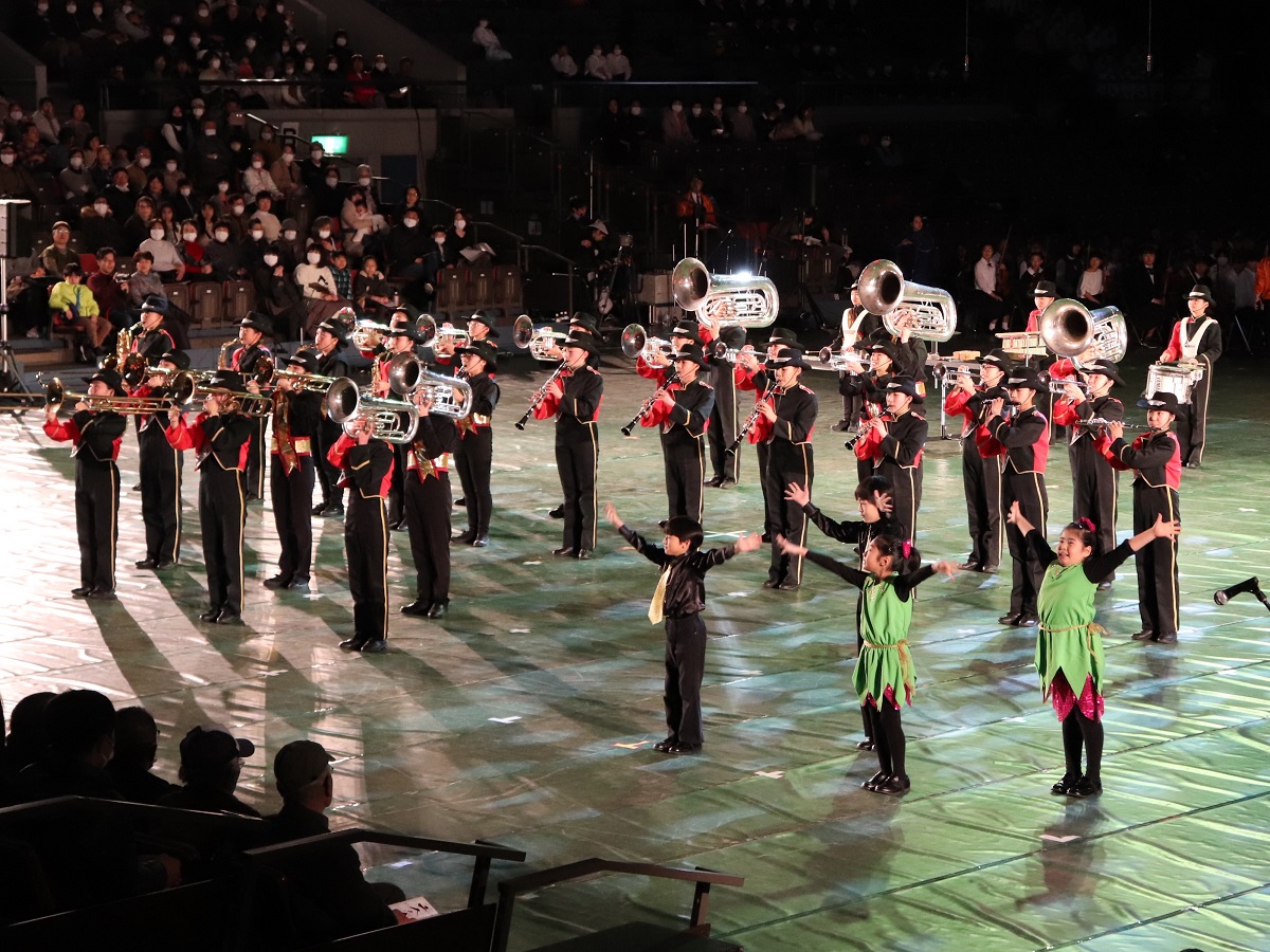 司会は、船橋市出身で千葉県を中心に歌手活動をしている横洲かおるさん。横洲さんの司会で、まずは600人を超える児童・生徒が参加しての市内小中学校合同吹奏楽のステージから始まり、続いてビッグバンド、小中学校合同マーチング、小中学校合同オーケストラ、YOSAKOI、ゴスペル、邦楽、和太鼓など、次々と各音楽団体や市内小中学校の音楽関係の部活動団体が演奏を披露した。
