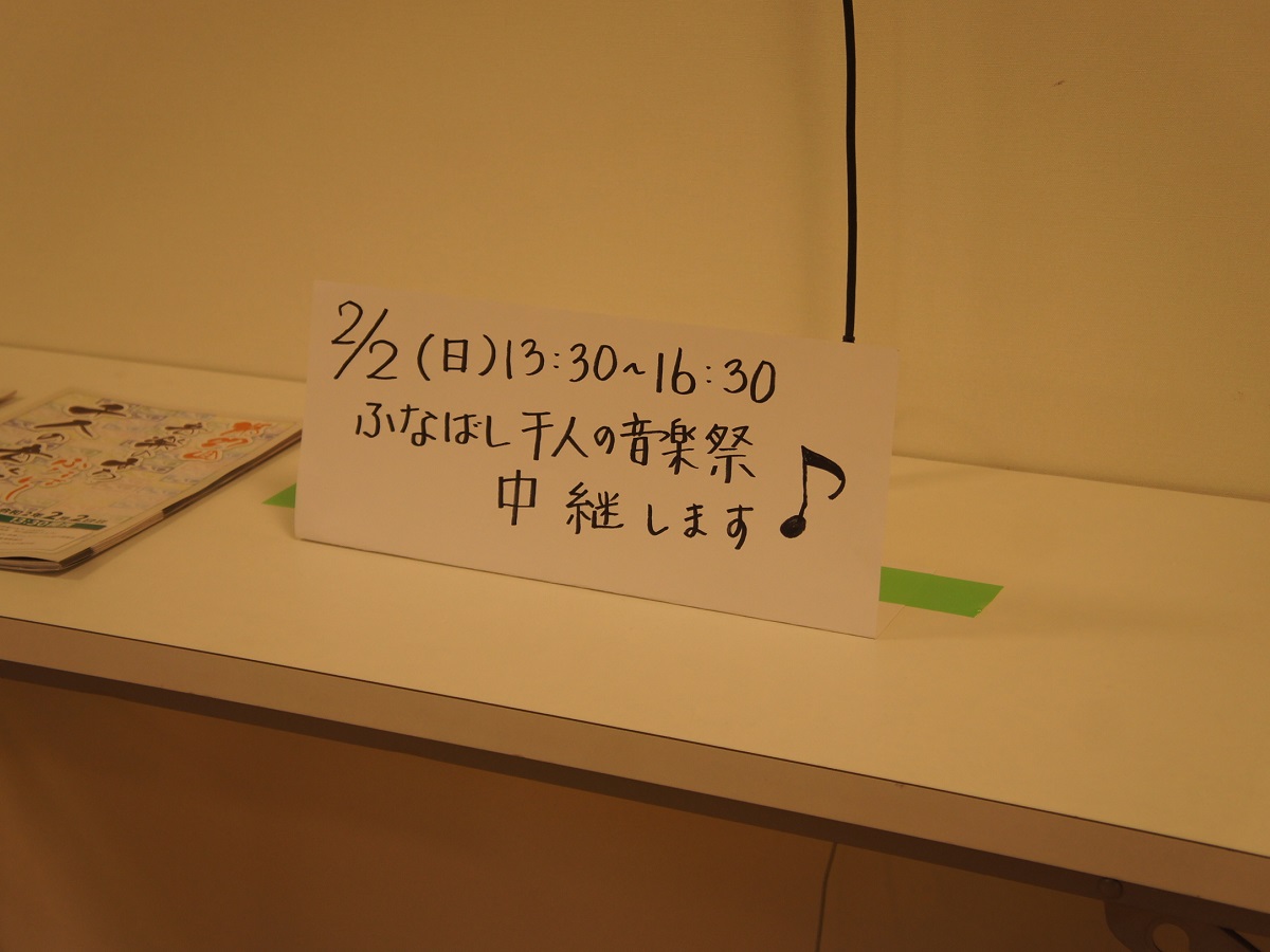 船橋アリーナ(船橋市習志野台7-5-1)を会場として例年2月に行われる「音楽のまち・ふなばし 千人の音楽祭」は、ここ数年、市内公民館のいくつかをパブリックビューイング会場として生中継が放映されていたが、今年は2月2日の開催日、試験的に市内の民間施設4カ所もパブリックビューイング会場として一般開放された。