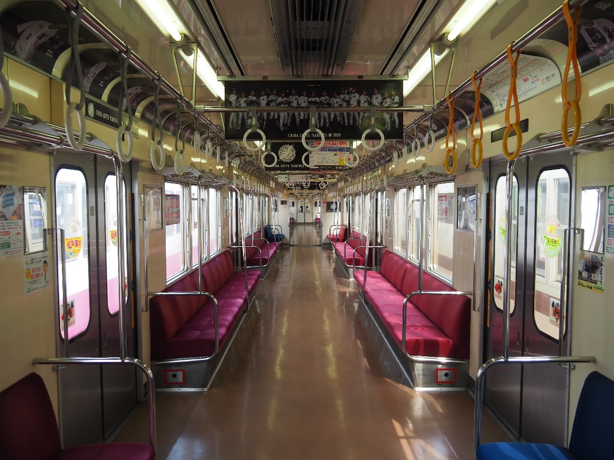 新京成電鉄(本社:鎌ケ谷市くぬぎ山4-1-12)は5月29日、電車車体側面から車内まで千葉ロッテマリーンズ一色に装飾したラッピング電車「2020年マリーンズ号」の運行を開始した。