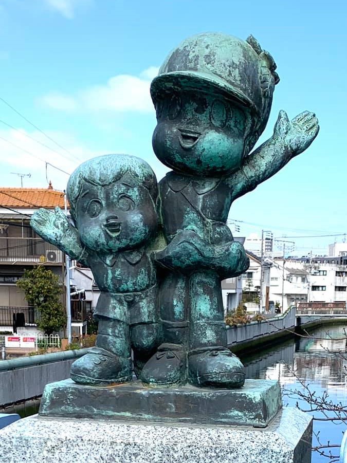 船橋駅コンコースに建つ「さざんかさっちゃん」のブロンズ像は、1980(昭和55)7月5日に除幕式が行われ、今年で除幕から40年となる。1979(昭和54)年、船橋青年会議所(JC)創立10周年の記念事業「あかるいまちづくり運動」の集大成として「コミュニティファンド(地域基金)=さざんかさっちゃん教育基金」が提唱され、「さざんか募金運動推進協議会」を設立。さっちゃん像はそのシンボル像として建立された。船橋在住の漫画家・牧野圭一さんが「さっちゃん」を考案、東武鉄道、東武百貨店船橋店の協力のもとコンコースに建立された。