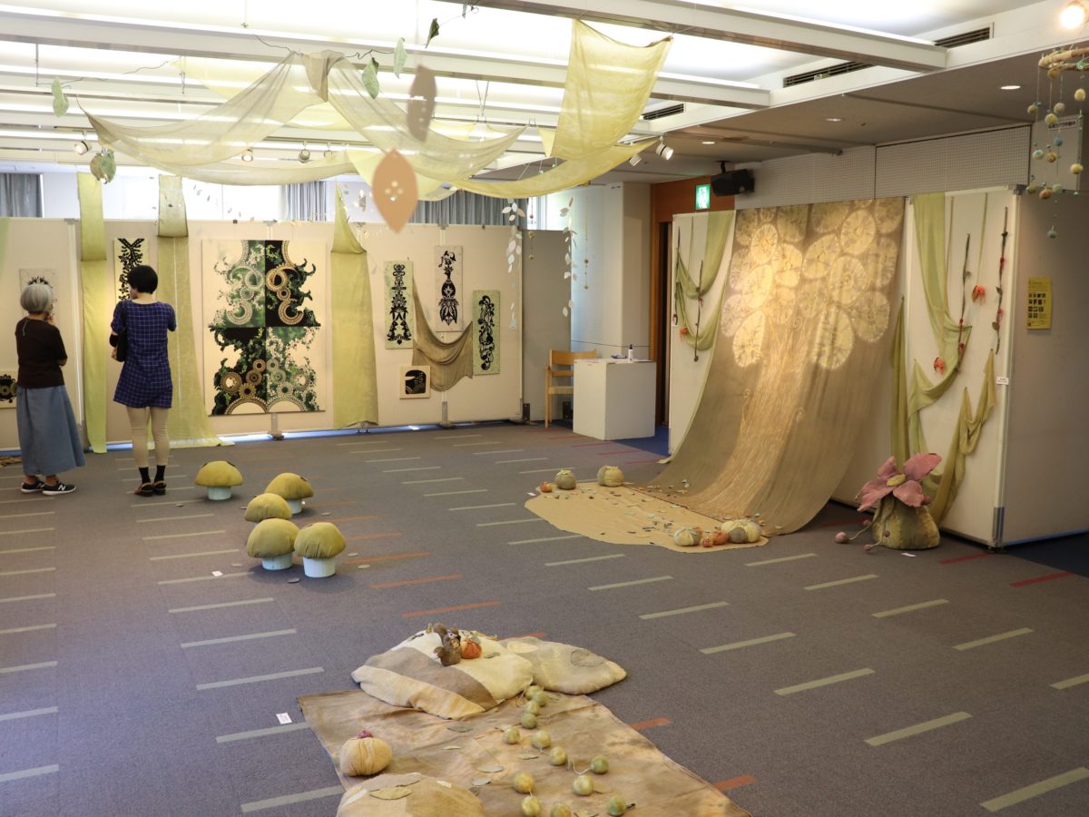 同館の1階多目的室では通常、企画展示が行われている。2008年からさまざまなアーティストとコラボ展示をスタートしていた船橋市内に住む草木染め作家・駒澤菜穂子さんは、同館から依頼を受け、2013年からコラボ展示を同館の企画展示として毎年開催してきた。
