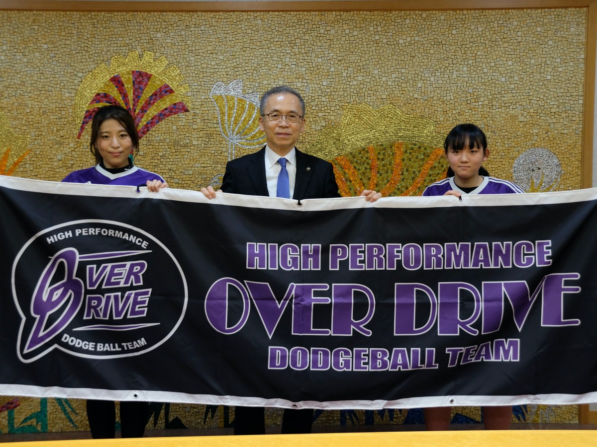 ドッジボールチーム「OVER DRIVE」に所属する船橋在住メンバー3人の「第7回全日本女子総合選手権大会」への出場が決定したことを報告しに、3人のうち2人のメンバーが11月20日、船橋市役所(船橋市湊町2-10-25)を訪れた。