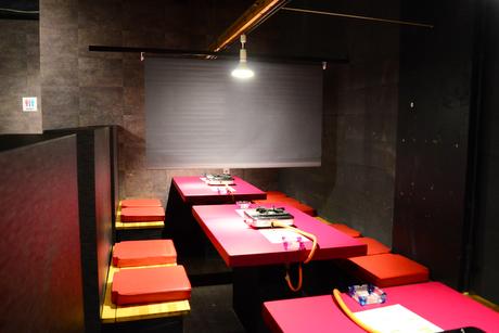 店舗面積は15坪。立ち飲み風席が50席、仕切りつきのテーブル席が16席。
