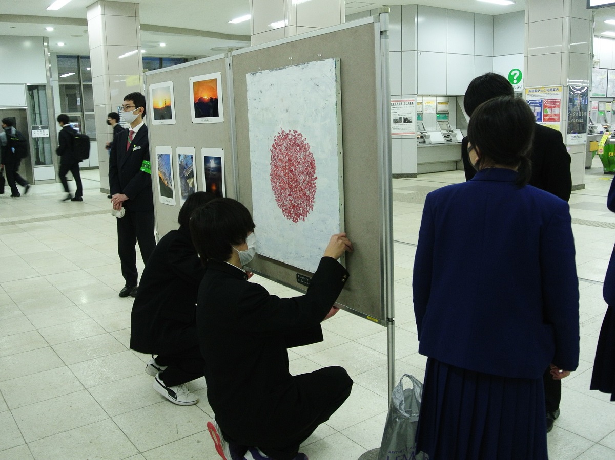 会場を提供した東葉高速鉄道駅務課の佐藤さんは、「鉄道の駅は人が往来するところ。地域との連携が大切。コロナ禍で苦しいことの多いこの時期に、地域の学校と一緒にギャラリー展示をして、地域を応援できることは喜びです」と話した。