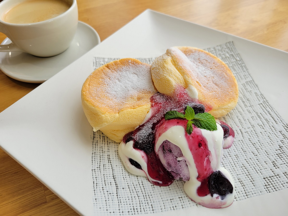 オムライスは「デミハヤシオムライス」(1,280円)、トマトクリームソースオムライス(1,380円)など手作りのソース6種類を用意。パンケーキとオムライスに使用する卵は、青森から取り寄せている。