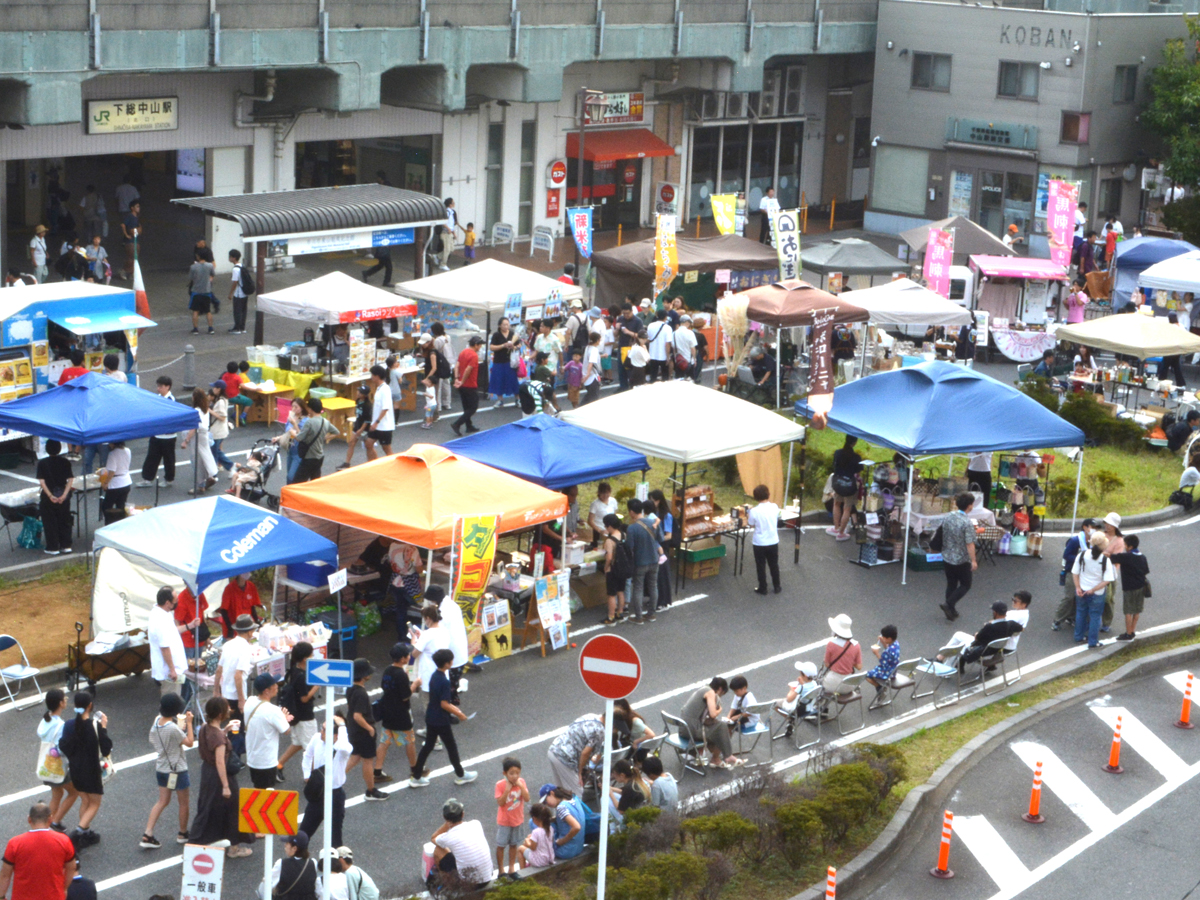 2日目は駅前が「おぐり朝市」に開放され、ロータリーを囲むように出店が並び「まつり」を盛り上げた。中山商店会の有岡仁美会長は「中山は船橋と市川をまたぐ地域、今年は『オールなかやま』を掲げ市を越えての取り組みがなされ、来場者が5万人を上回るにぎわいとなった」と振り返った。