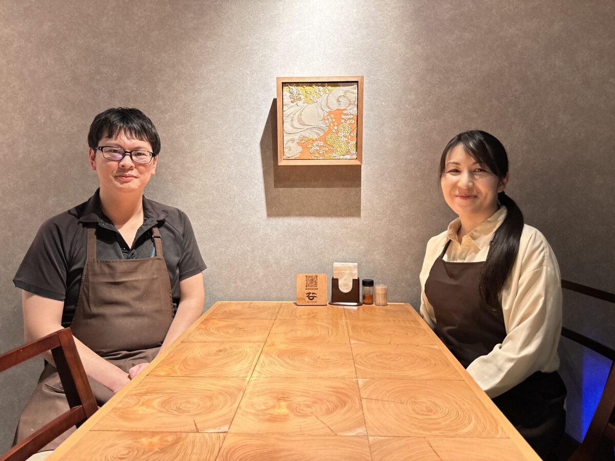 店舗は自宅1階部分を店舗用に改装、夫婦で切り盛りする。10坪ほどの店内はカウンター5席とテーブル14席の計19席。