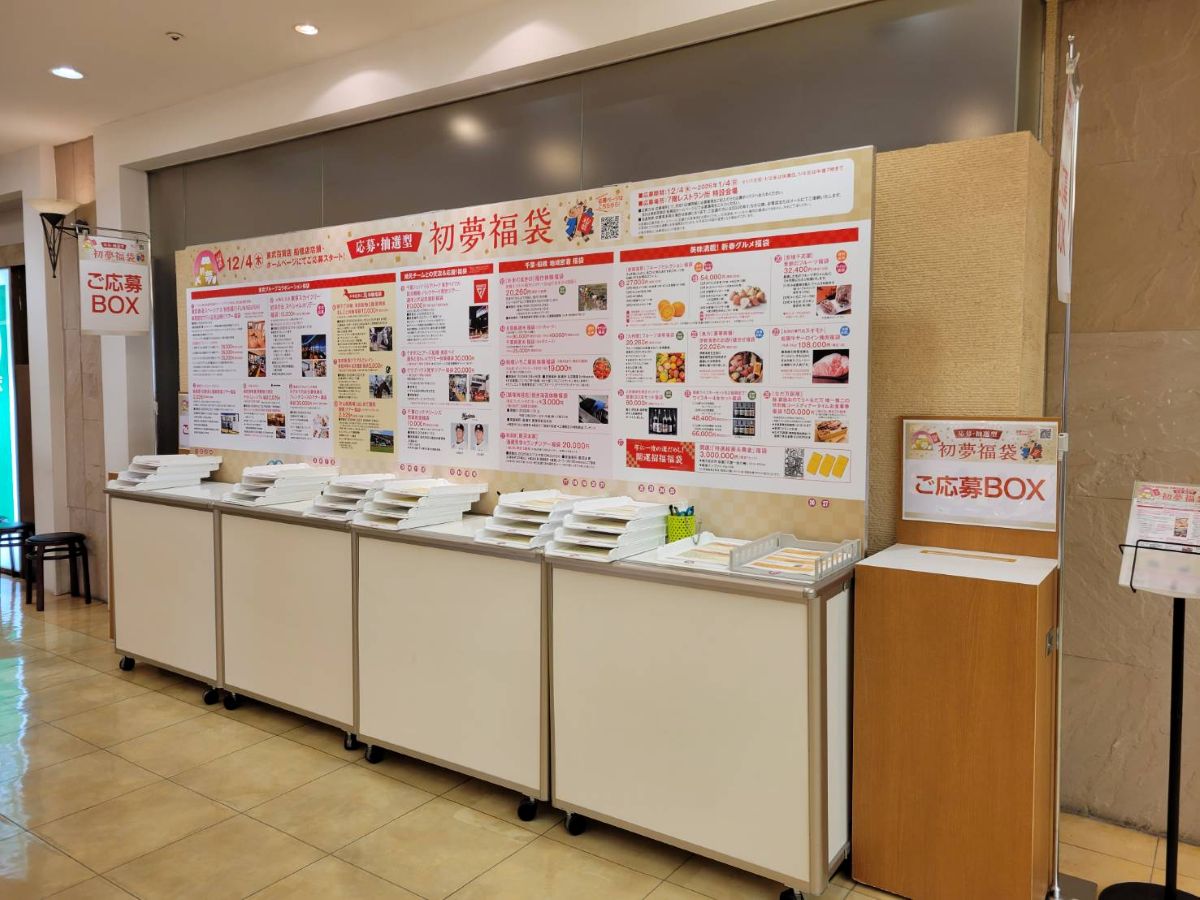 応募・抽選型の「初夢福袋」は、2026年1月4日19時まで受け付ける。応募は7階レストラン街特設会場または公式サイトの応募フォームから可能。応募者多数の場合は抽選になり、当選者には1月5日以降、電話またはメールで連絡する。