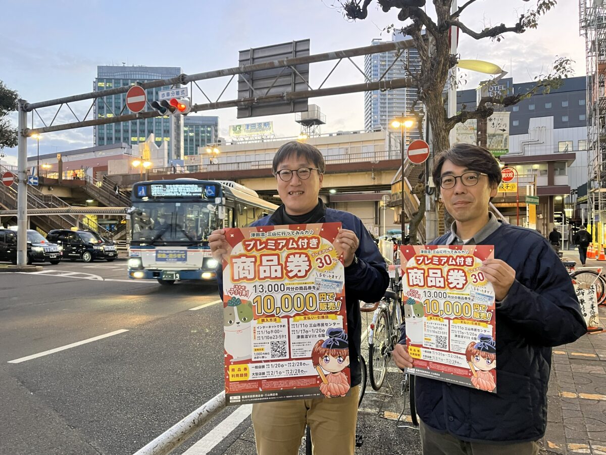 津田沼駅周辺の船橋市前原商店会と三山地区の三山商店会は、地域商店街の消費活性化を目的としたプレミアム付き商品券「津田沼・三山に行ってみルカ♪ プレミアム付き商品券」のネット予約を2026年1月1日から開始する。