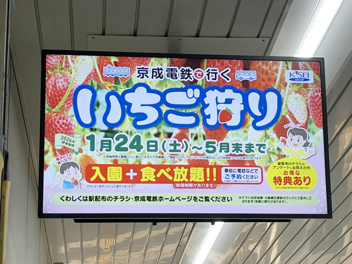 京成電鉄(本社:市川市八幡3)は、沿線の観光振興と地域農業支援を目的にした体験企画「京成電鉄で行くいちご狩り」を1月24日から開始している。