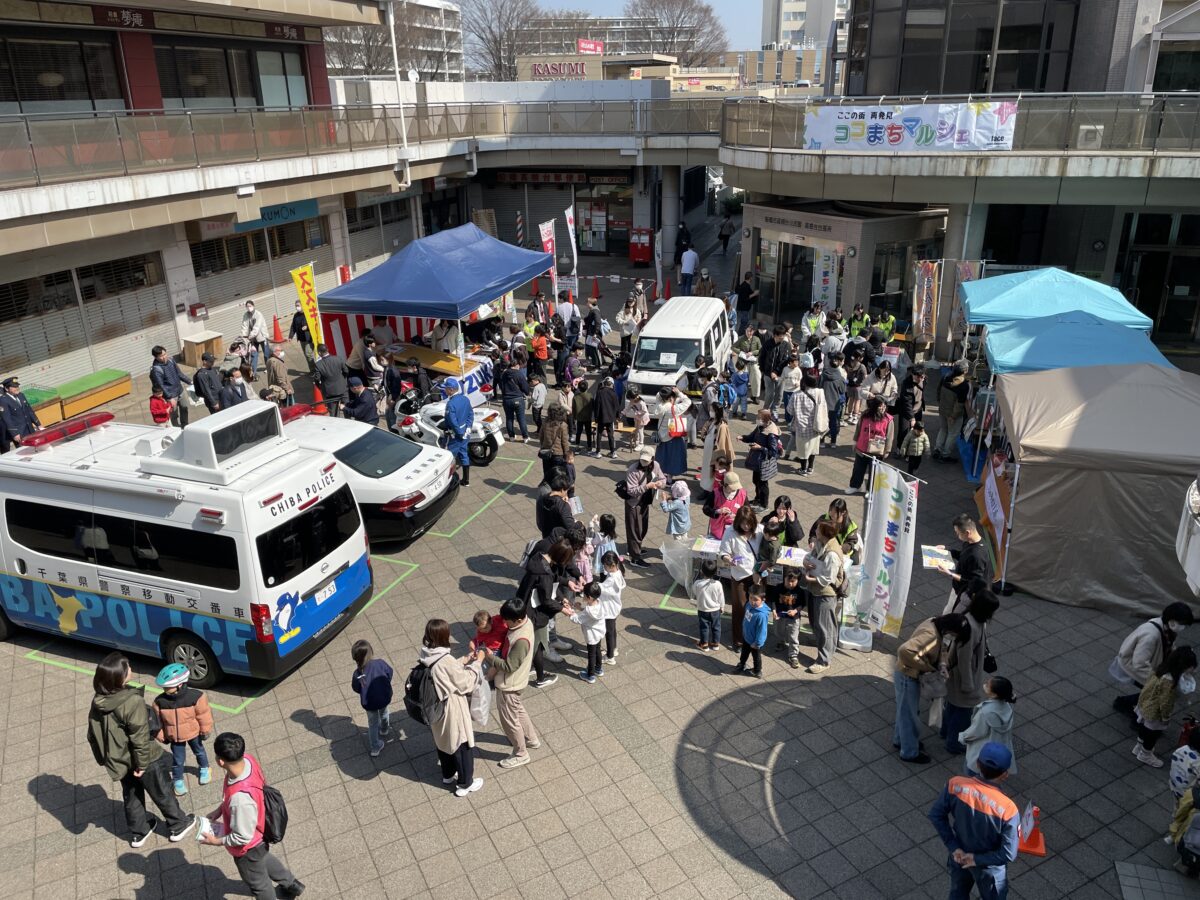 ピアノやバイオリンの演奏体験、近隣のカフェ店員に教えてもらうラテアートづくりなどのワークショップのほか、船橋東消防署による消火体験、船橋東警察署によるパトカー乗車体験、紙人形劇体験など、多彩なプログラムが用意された。