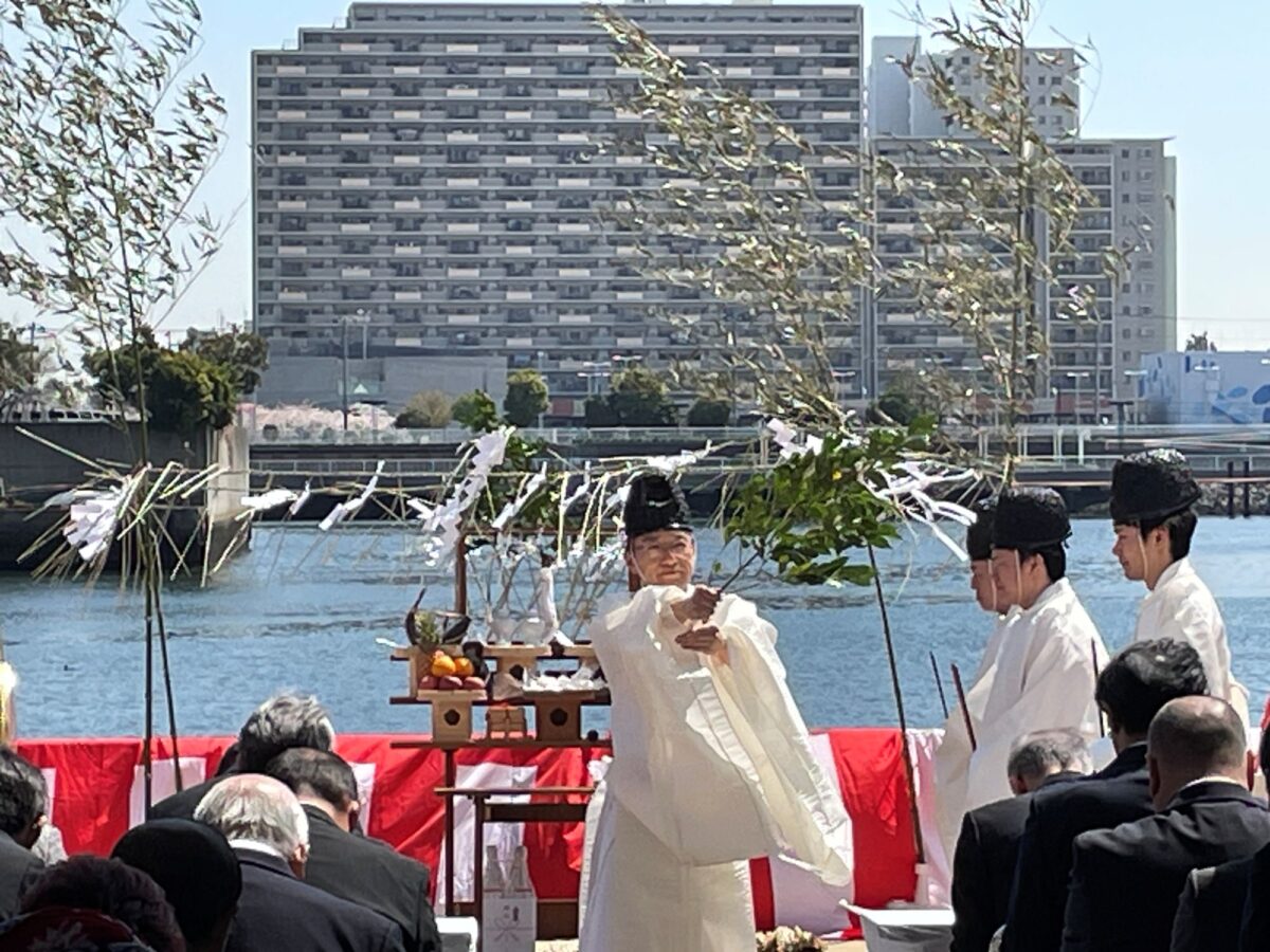 船橋漁港(船橋市湊町3-16-1)で4月3日、毎年この日に開催する「水神祭」が執り行われた。主催は船橋市漁業協同組合。
